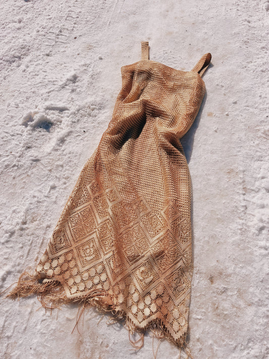 Vintage Golden Lace Fringed Dress