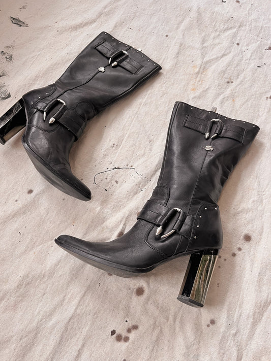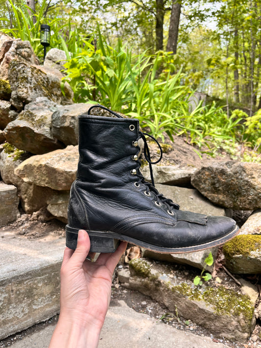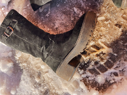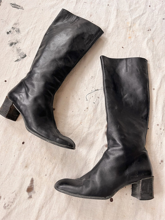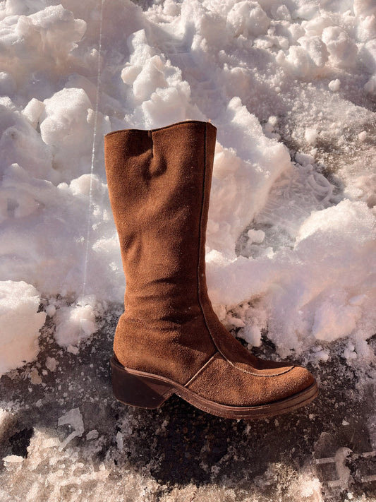 Vintage Dusty Black Suede Chunky Heeled Winter Boot 6w