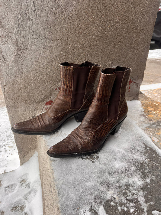 Franco Sarto Leather Western Heeled Snakeskin Boot